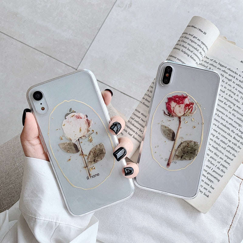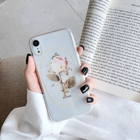 Features: Luxury Glitter Gold Foil Rose Flower Phone Case