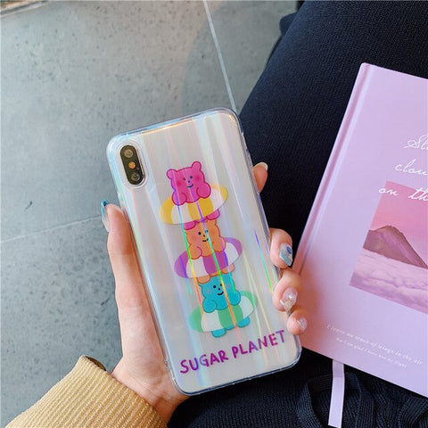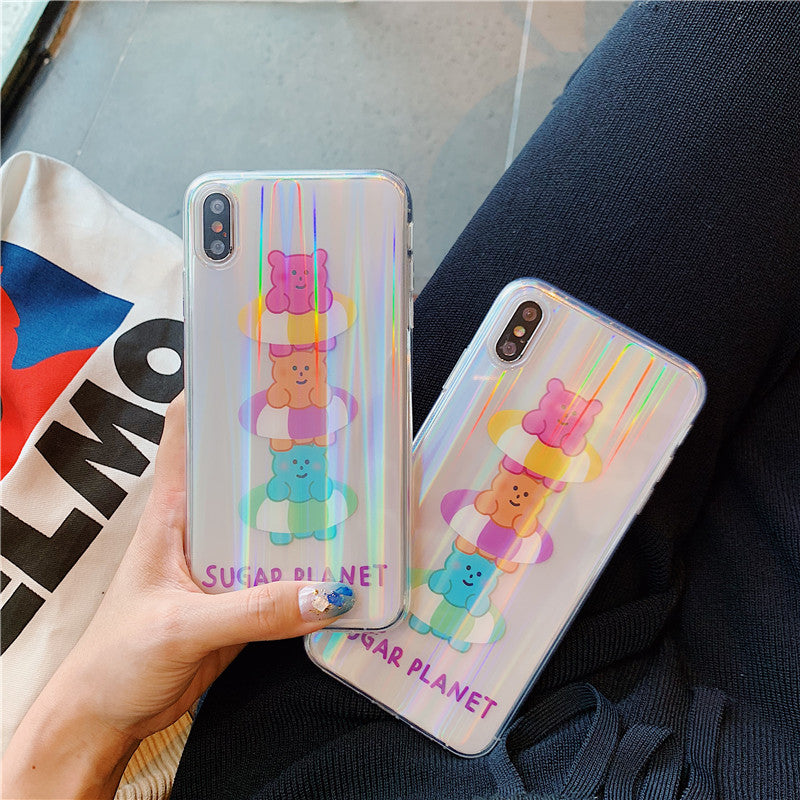 Features: Fashion Aurora Laser Cartoon Bear Phone Cases